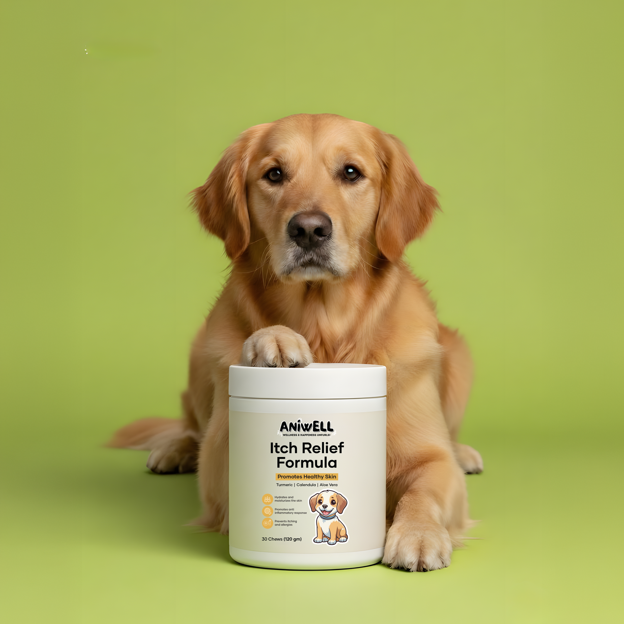 Aniwell Itch Relief Formula: A Turmeric & Vitamin E Booster For Hot Spots, Dermatitis, Yeast & Ear Infection, & Allergies