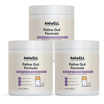 Aniwell Feline Gut Formula is a natural probiotic and digestive supplement for cats. Featuring prebiotics, probiotics, and gut-friendly botanicals, it promotes healthy digestion, nutrient absorption, and immune support in a tasty soft chew cats love.