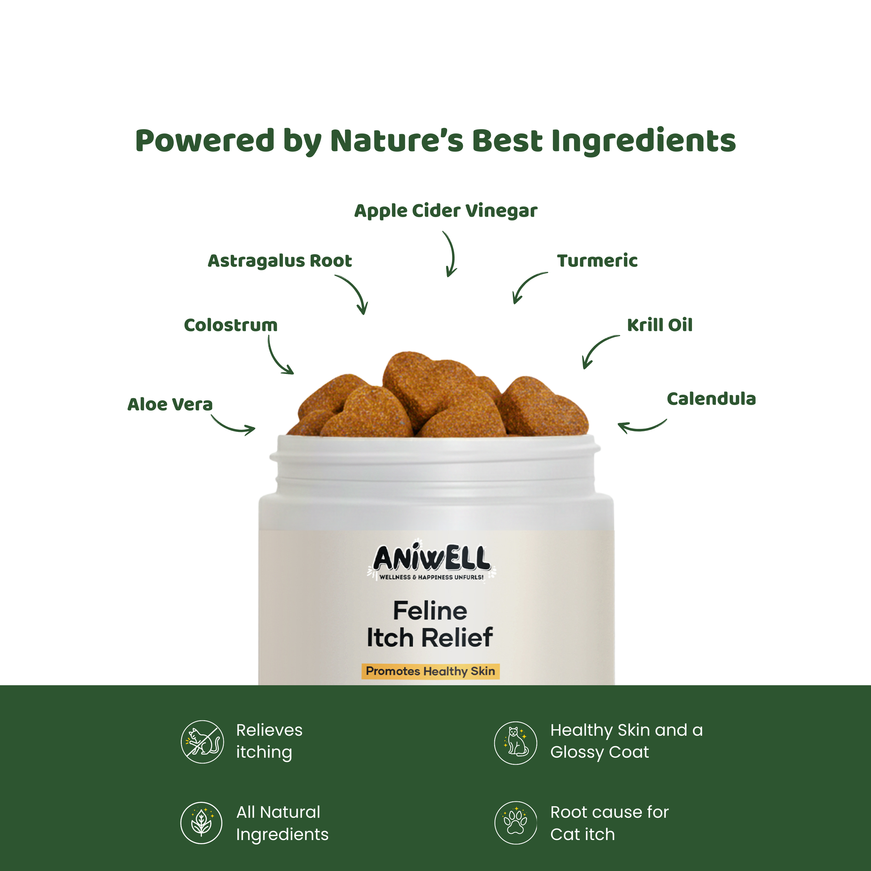 "Aniwell Itch Relief is a trusted, natural alternative for hotspots, bald spots, and itching for cats."