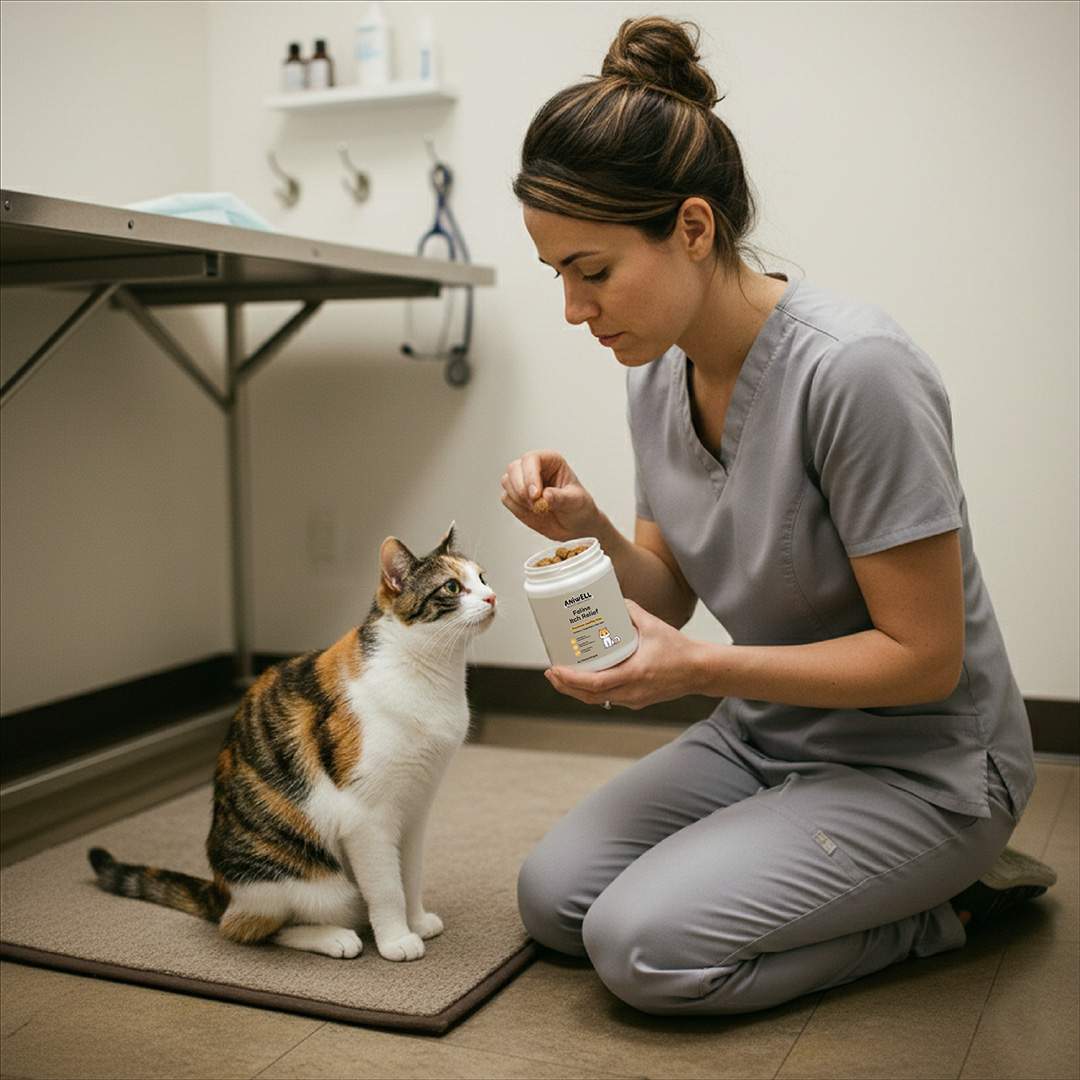 Most pet parents notice reduced scratching and irritation within 2–3 weeks of consistent use. Skin healing and coat improvement may continue over 4–6 weeks, depending on your cat’s condition.
