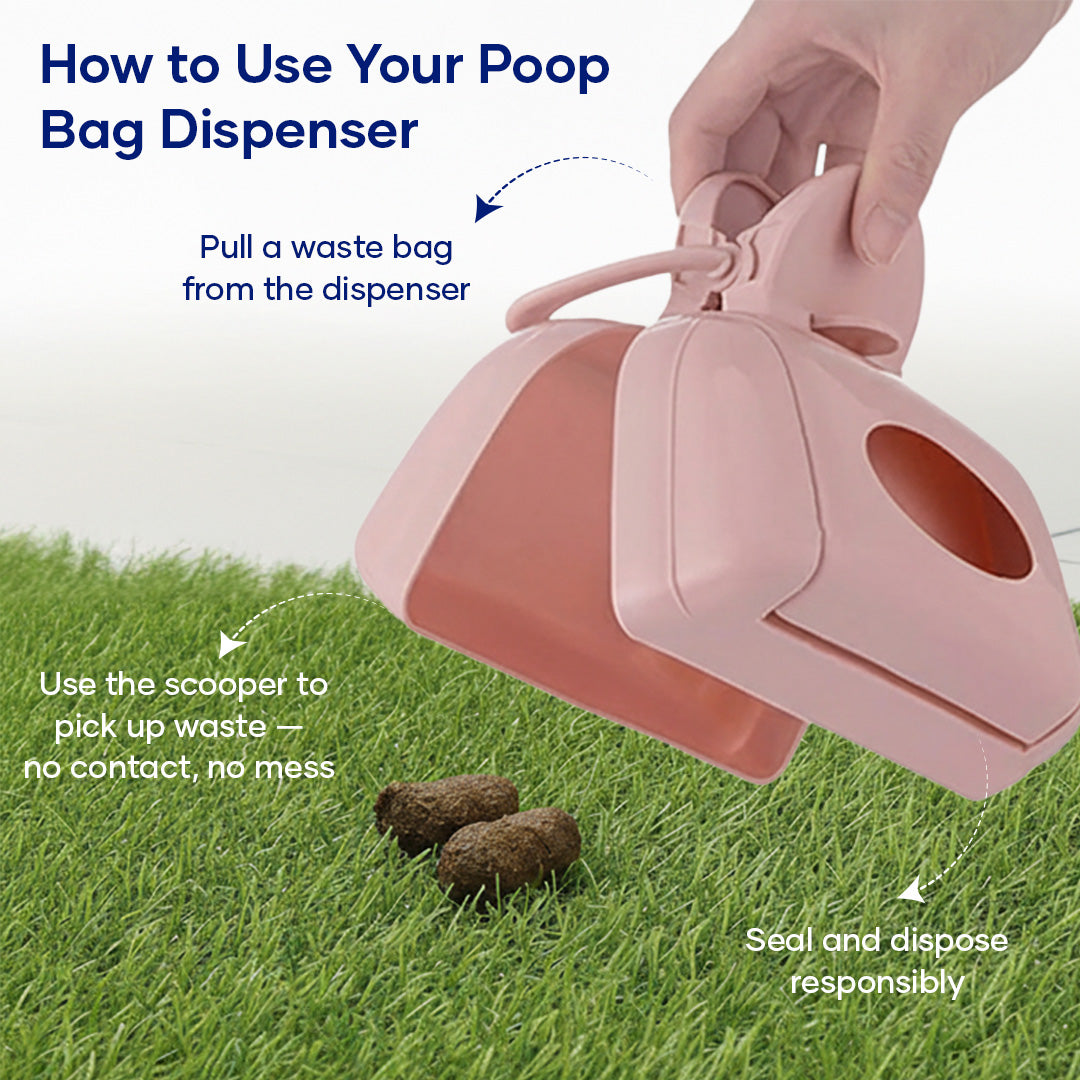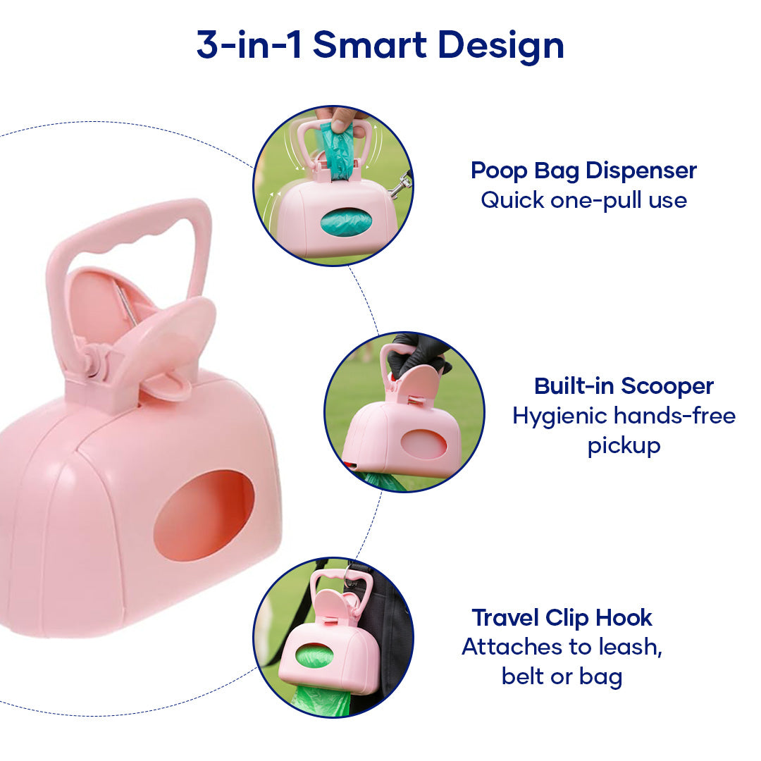• 3-in-1 Design – Poop bag dispenser, built-in scooper, and waste bag holder all in one