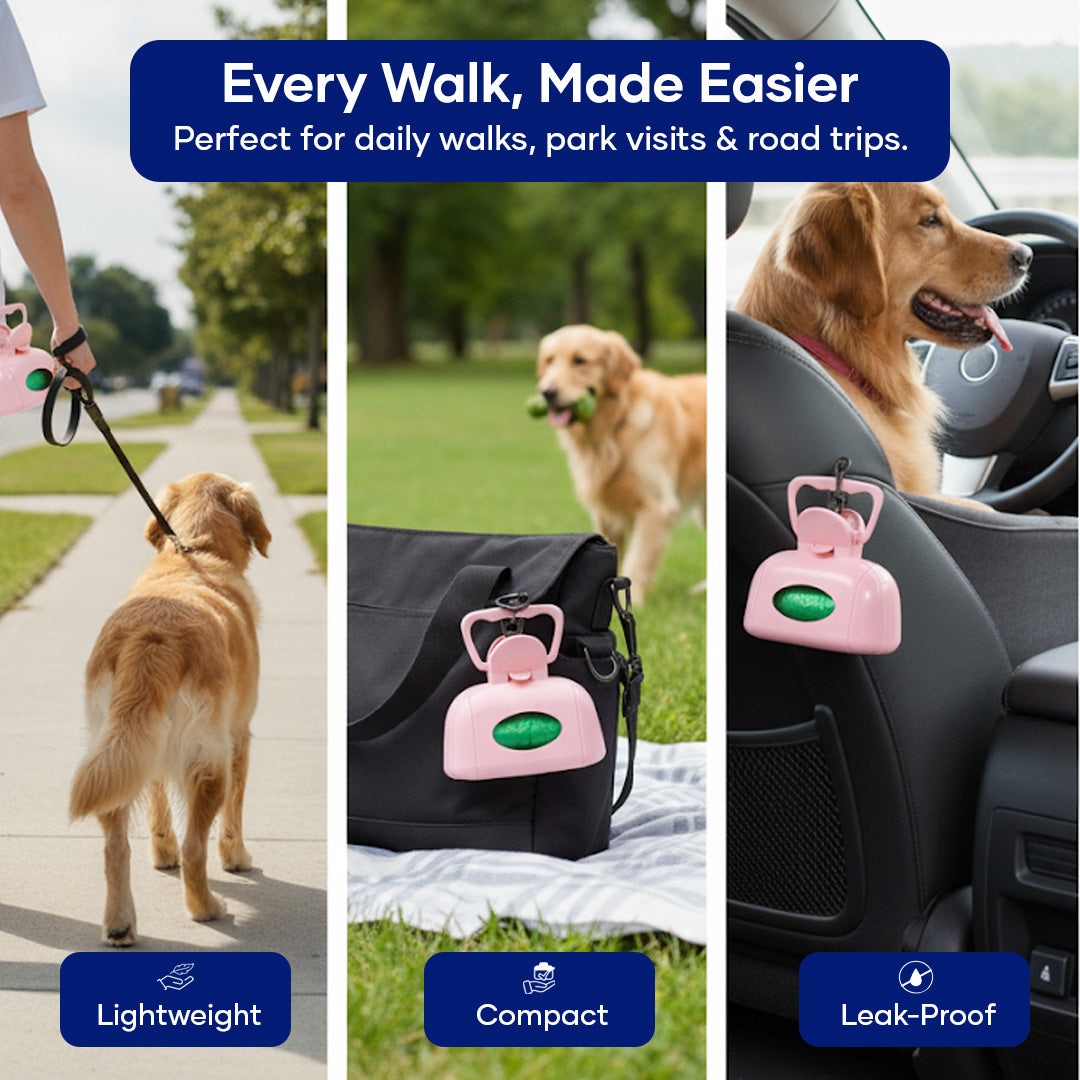 • Clip-On Convenience – Clips easily to your leash or bag for grab-and-go portability