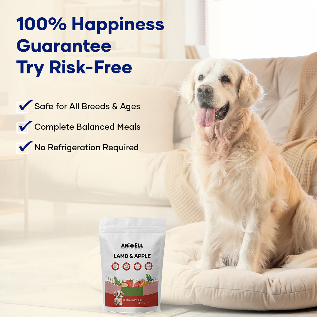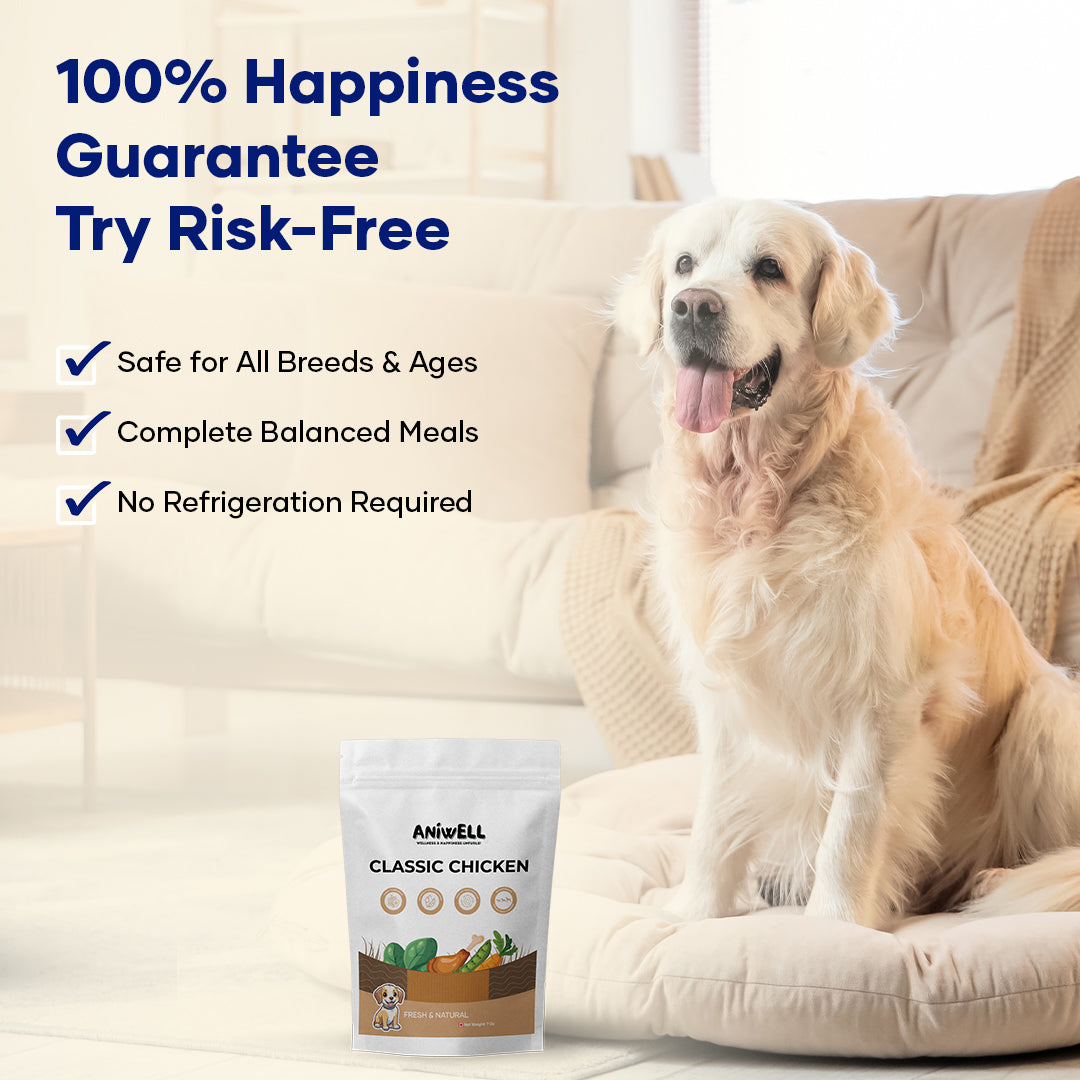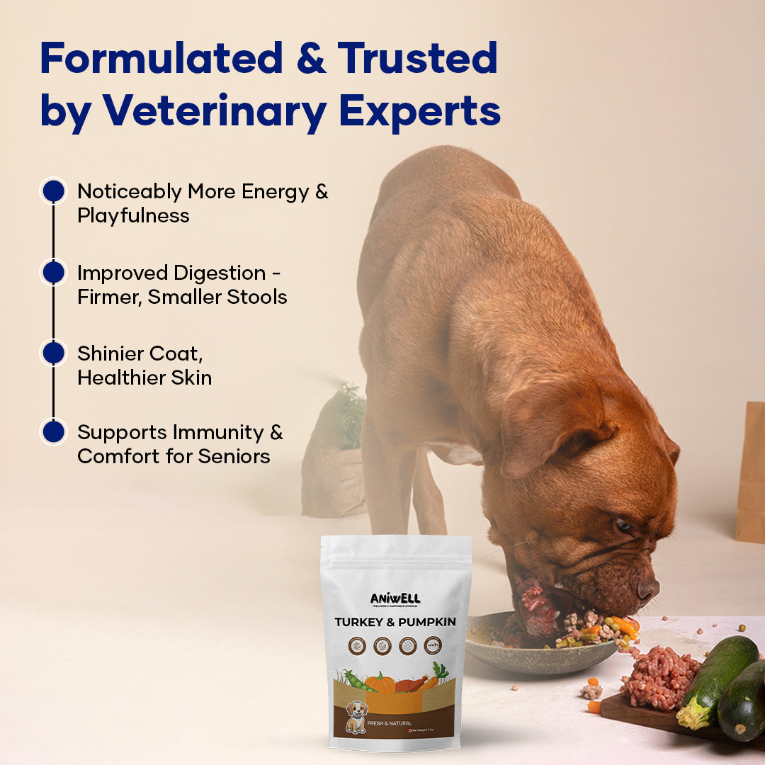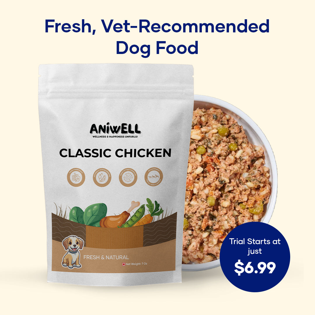 Choose from our delicious flavors: Classic Chicken, Lamb & Apple, and Turkey & Pumpkin. Packed with nutrients and gently cooked for easy digestion, Aniwell Fresh Food provides real results you can see: firmer stools, shinier coats, and a noticeable increase in energy and playfulness.