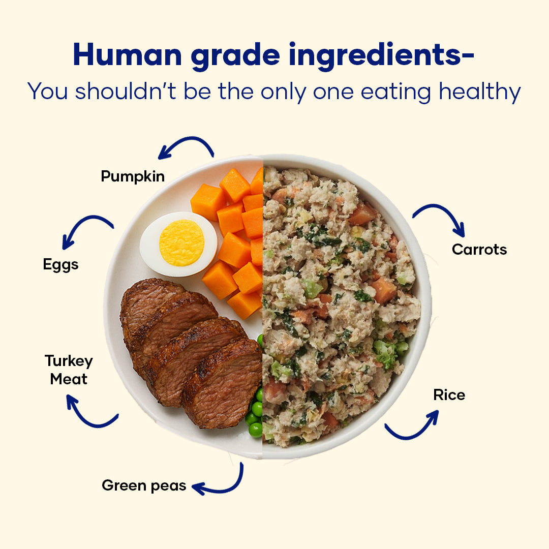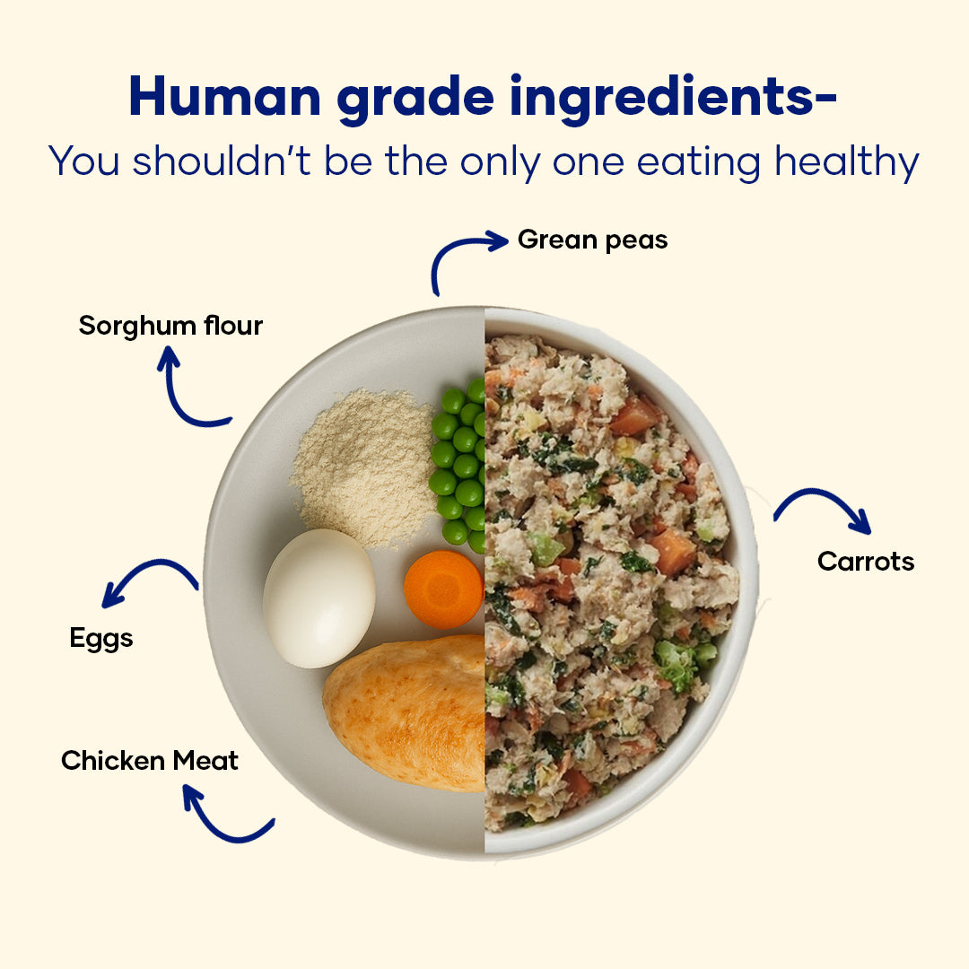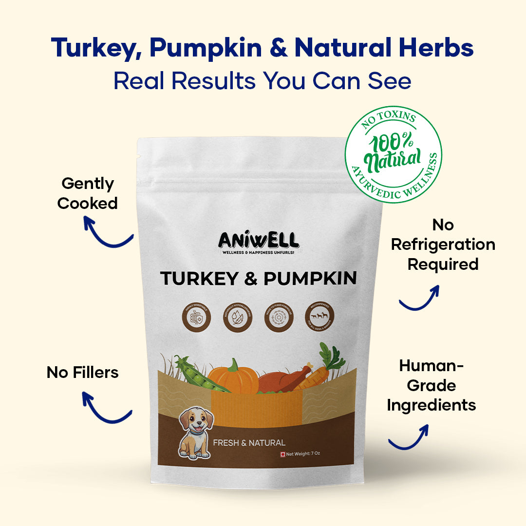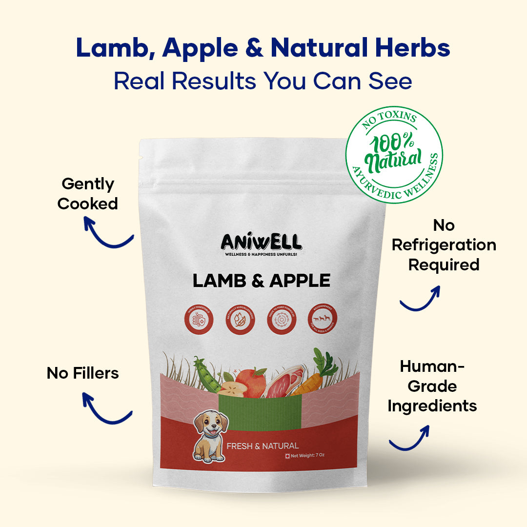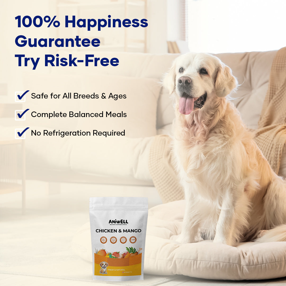 Aniwell Fresh Food offers a healthy, balanced meal for dogs with no refrigeration required. Made with premium, human-grade ingredients like real meat, eggs, and a blend of 18+ Ayurvedic herbs, this vet-recommended dog food supports digestion, immunity, and overall well-being.